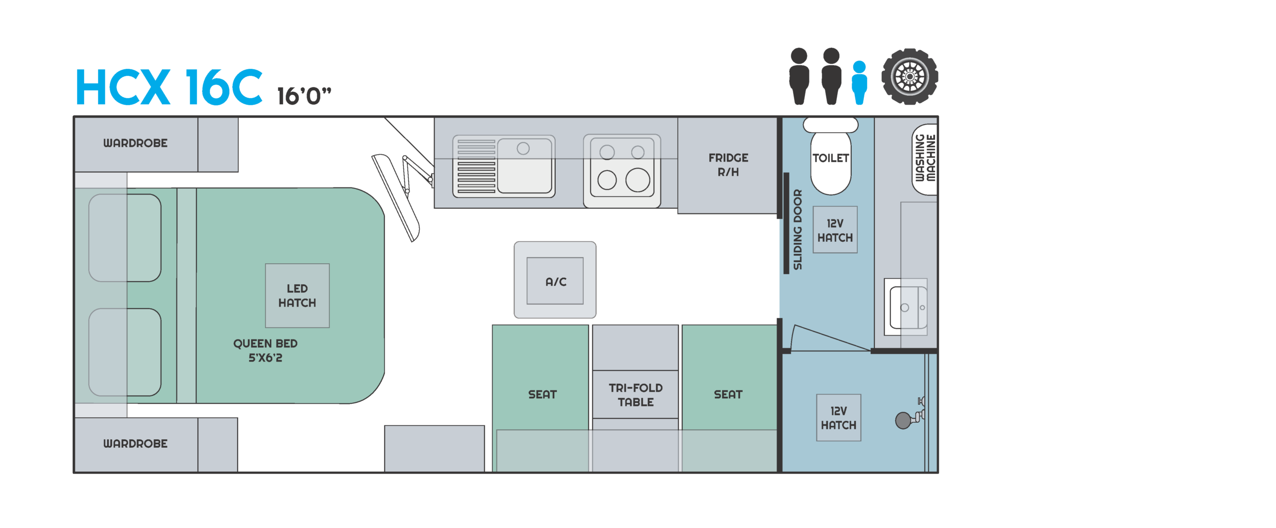 The powerhouse on wheels that is the HC-X. Showcasing a 3000w inverter as well as solar and lithium power, you’re provided with everything you need and more for your next adventure. With a washing machine included as well as combo diesel heating and hot water, heating vents fitted to the bedroom, kitchen and ensuite, rest assured you’ll be kept comfortable while travelling all year round, no matter the weather.