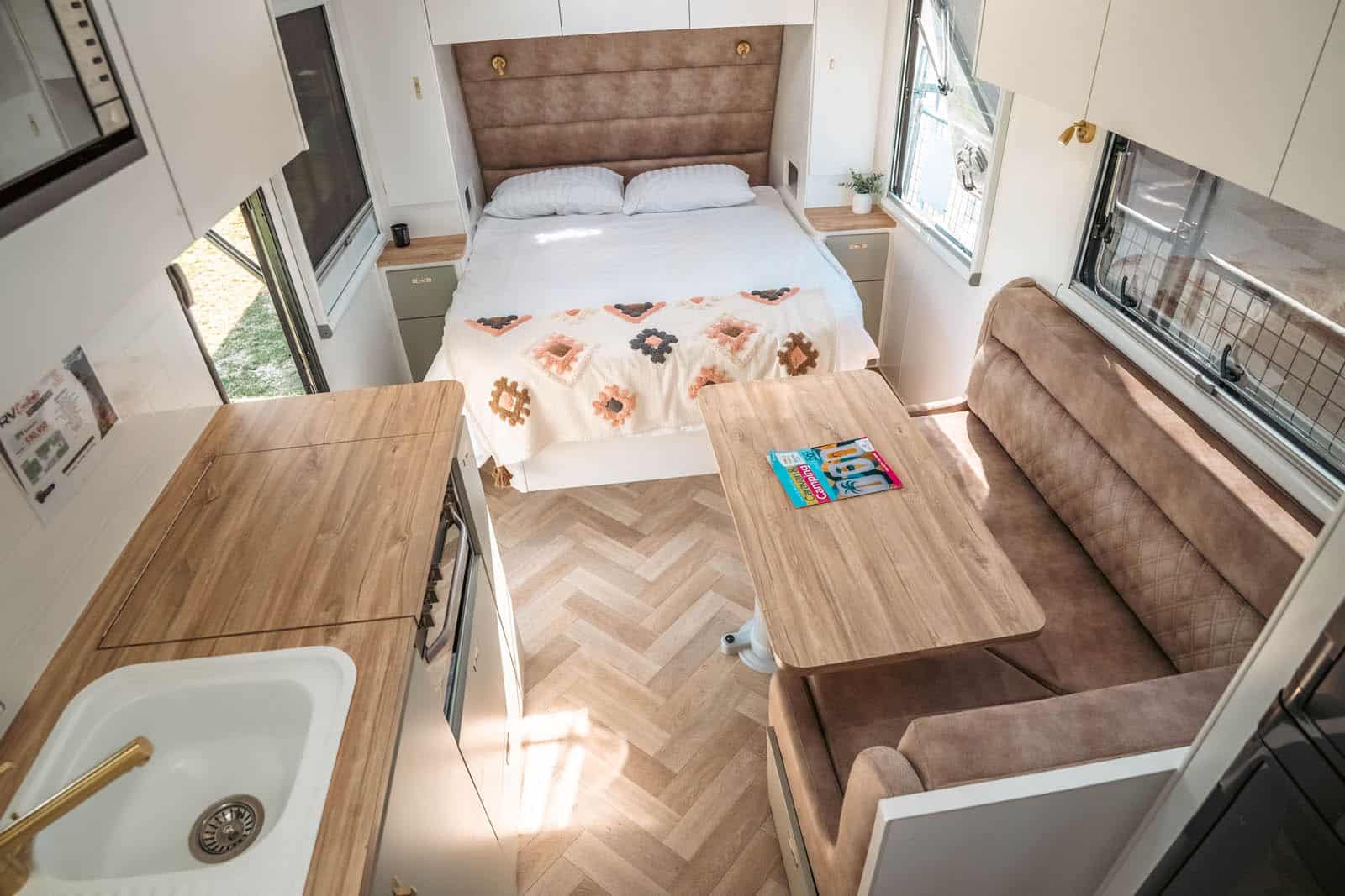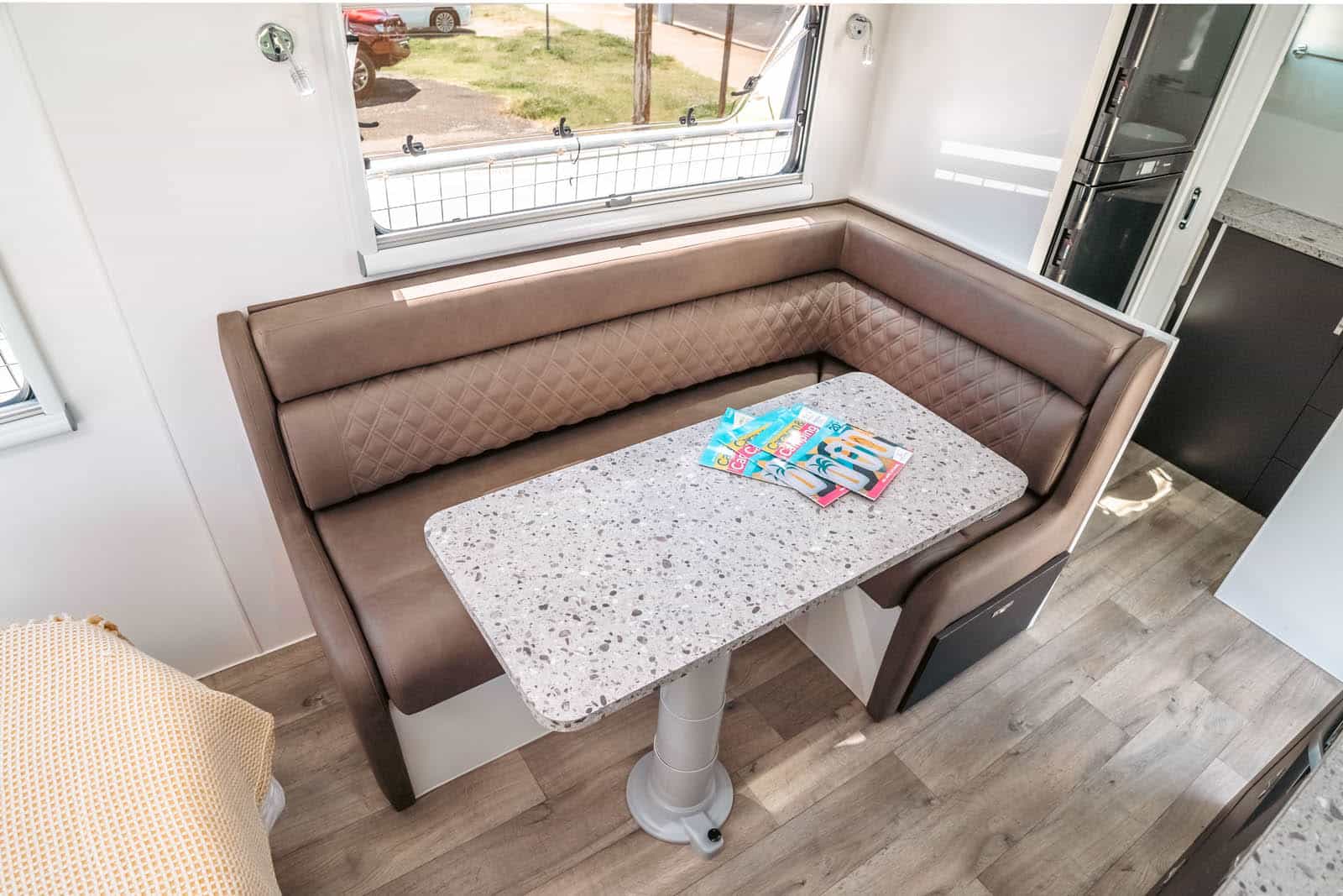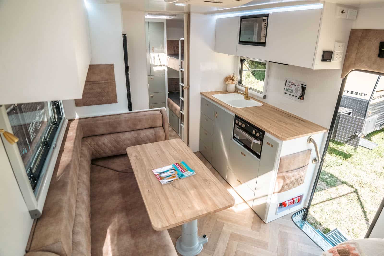 The Odyssey is set to have you travelling in style from start to finish for your next Australian getaway. Designed with flexibility and comfort in mind, the Odyssey is sure to exceed your expectations. Boasting a luxe-feel interior alongside high end appliances and solar power, you’ll also enjoy the versatility of space customisation with the Nuvoa telescopic table leg. With a reverse cycle A/C installed, we’ll have you staying comfortable all year round.