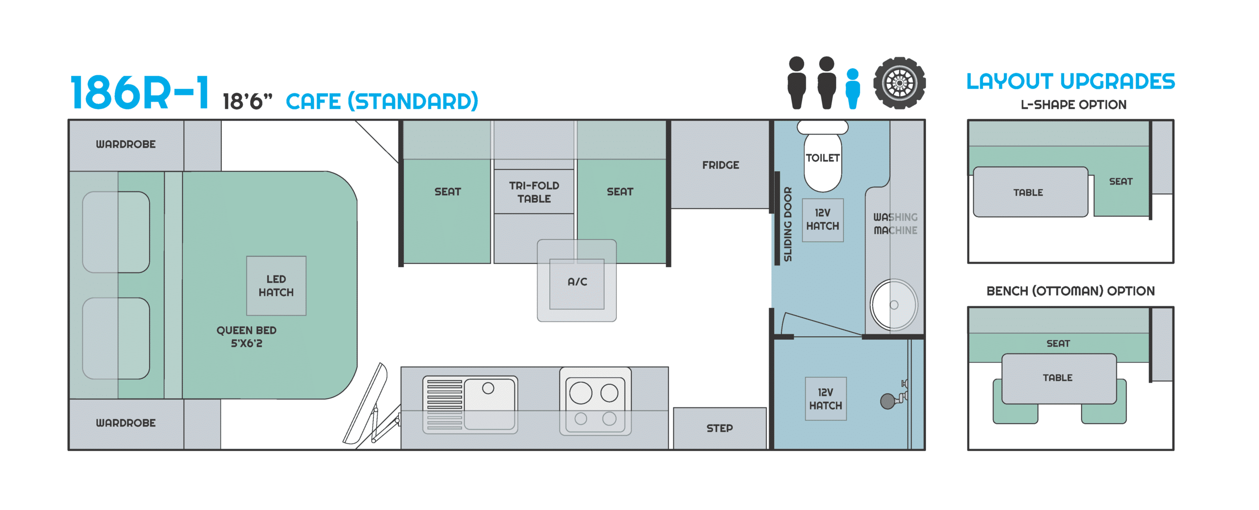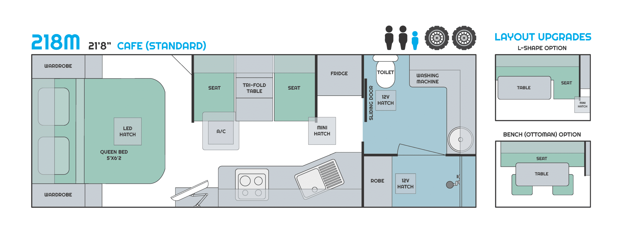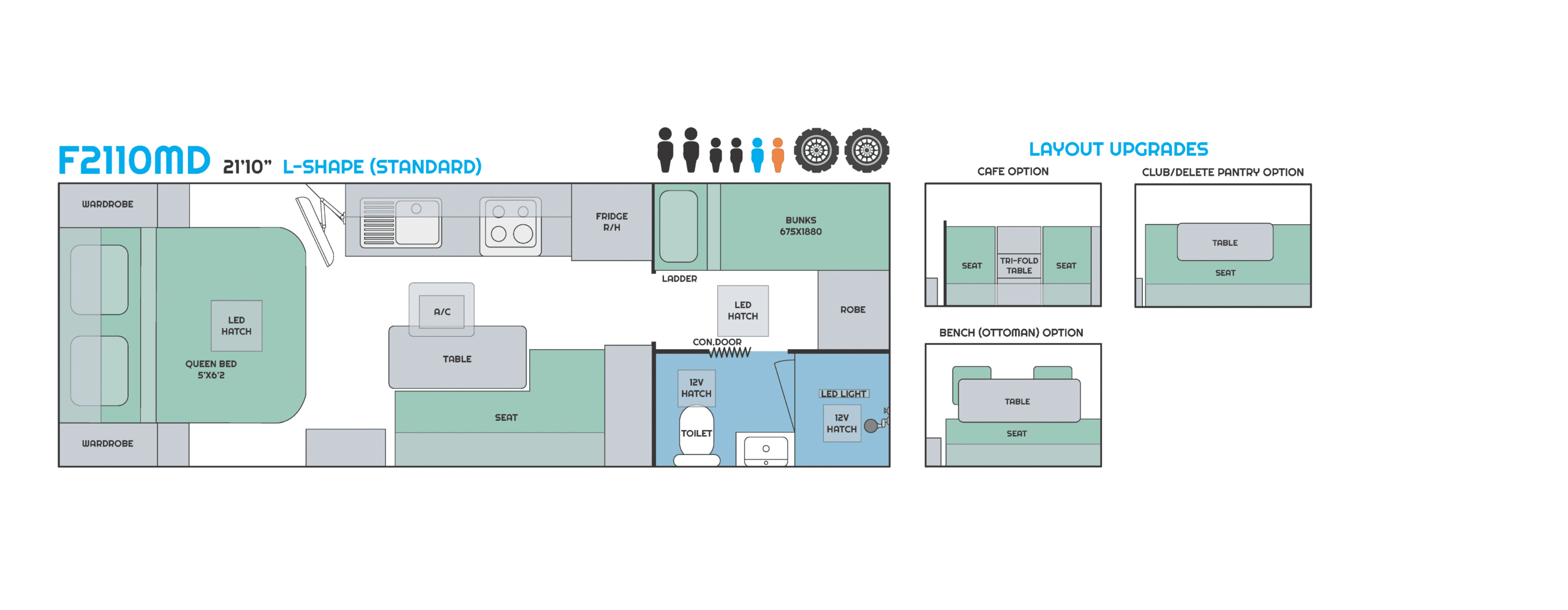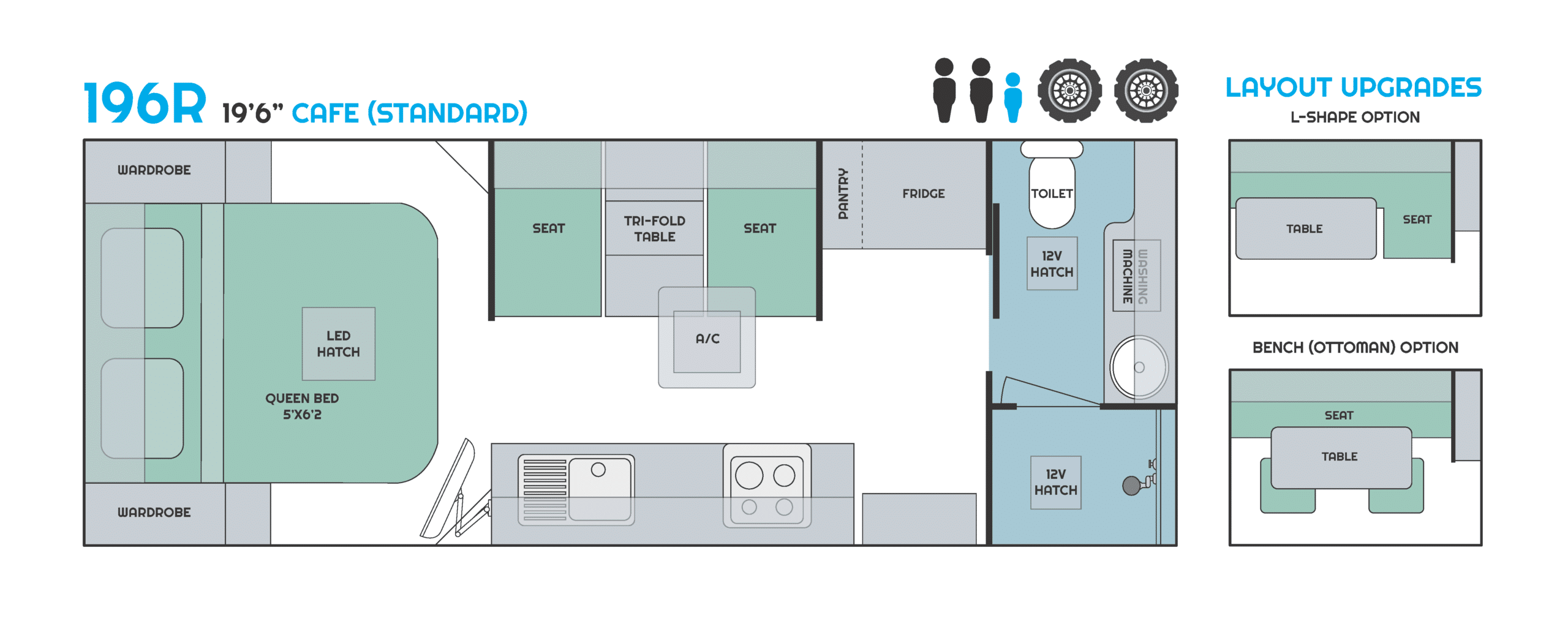 The Odyssey is set to have you travelling in style from start to finish for your next Australian getaway. Designed with flexibility and comfort in mind, the Odyssey is sure to exceed your expectations. Boasting a luxe-feel interior alongside high end appliances and solar power, you’ll also enjoy the versatility of space customisation with the Nuvoa telescopic table leg. With a reverse cycle A/C installed, we’ll have you staying comfortable all year round.