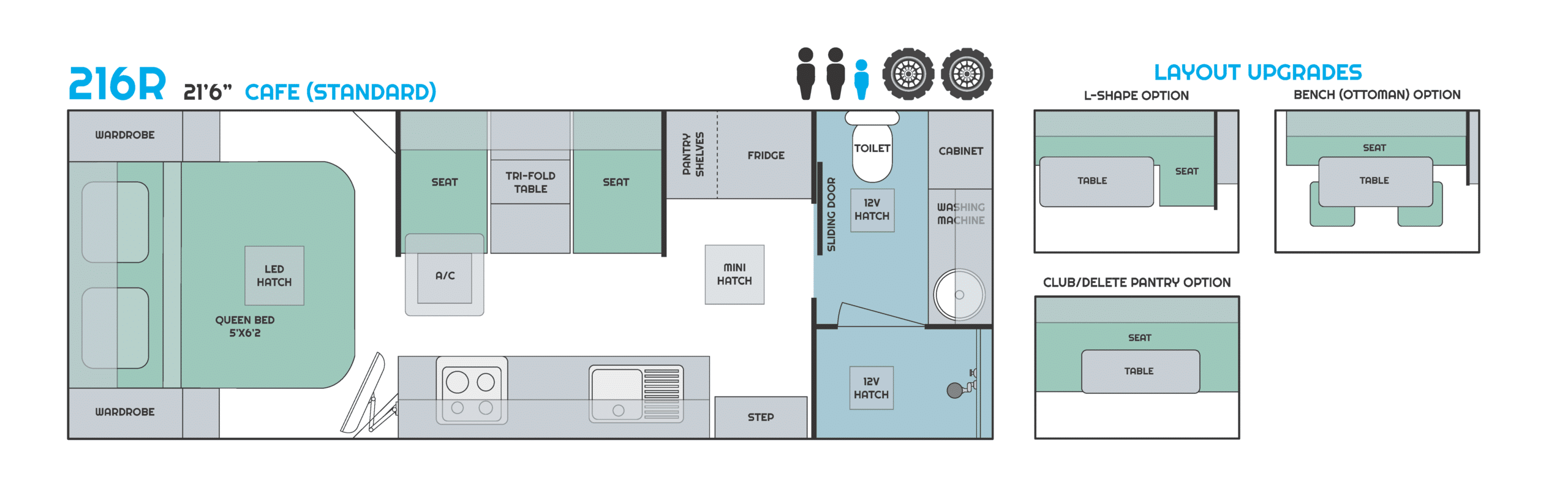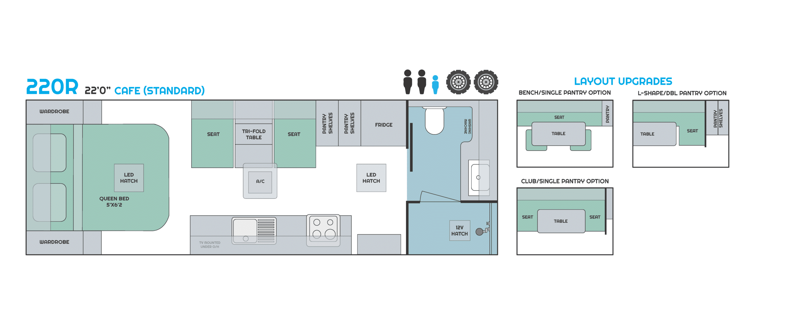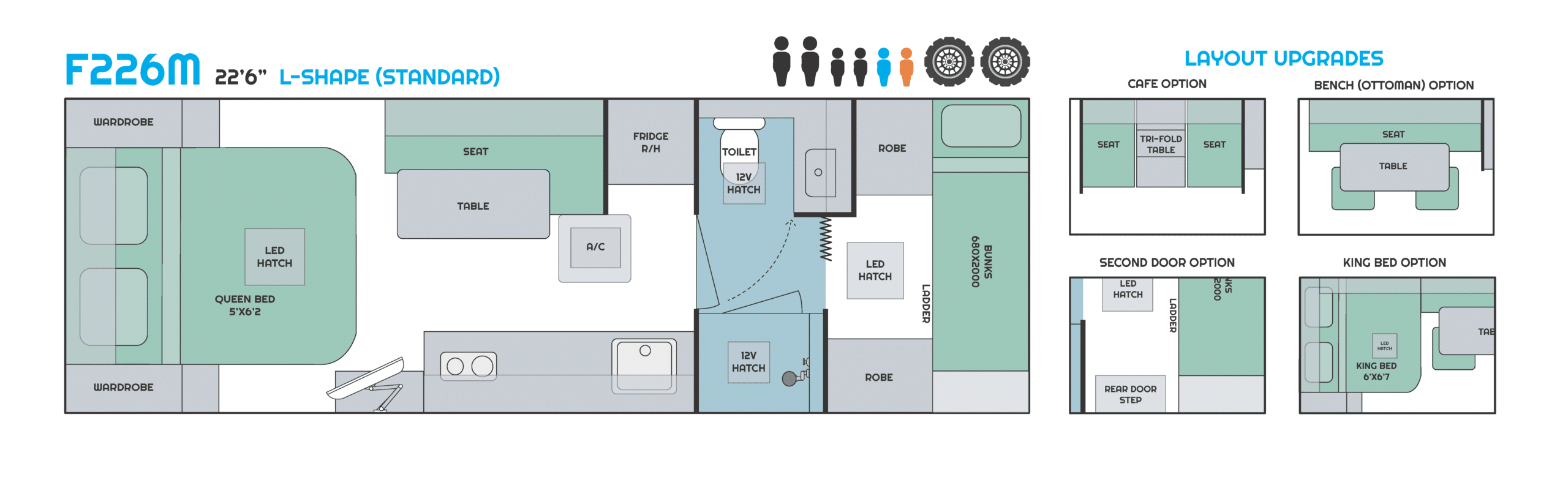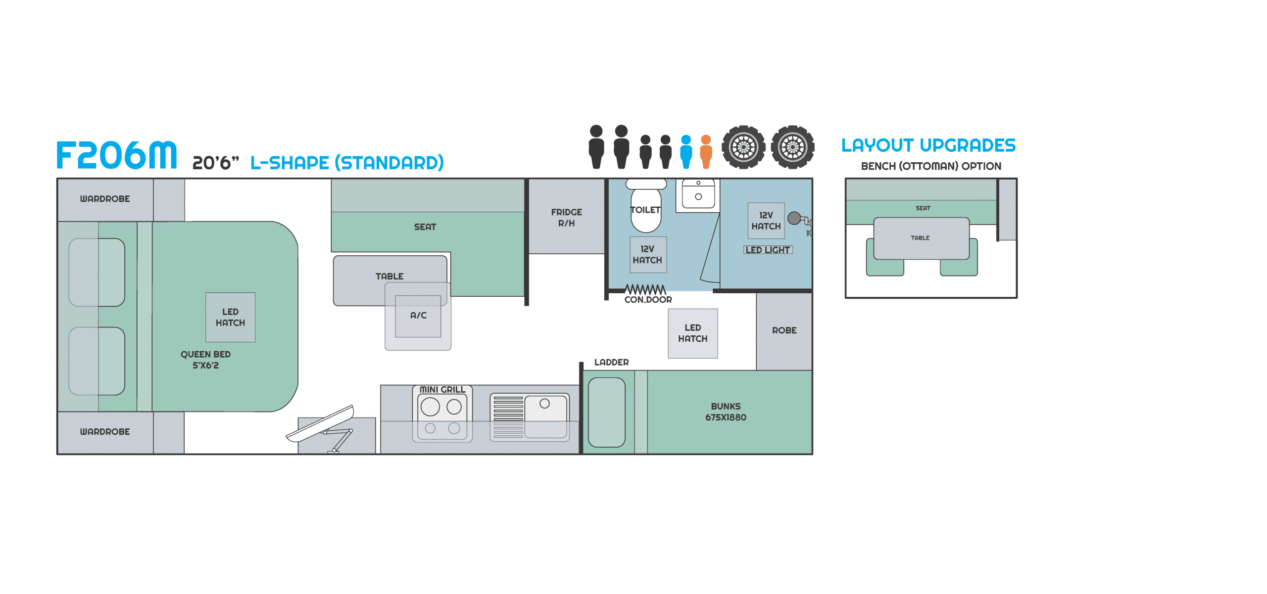 The Odyssey is your chance to experience it all while enjoying your caravanning adventure. With its Semi Offroad Independant suspension, you’re free to explore more than only the great open roads. Built with a sturdy Meranti timber frame and fitted with a gas bayonet, toolbox and an extended drawbar, the Odyssey provides comfort, safety and practicality as you travel in style.